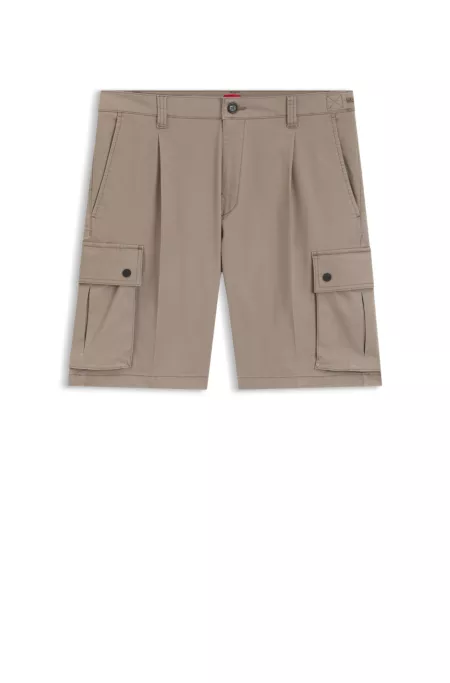 Cargo-Shorts aus Stretch-Baumwolle mit Bundfalten vorn