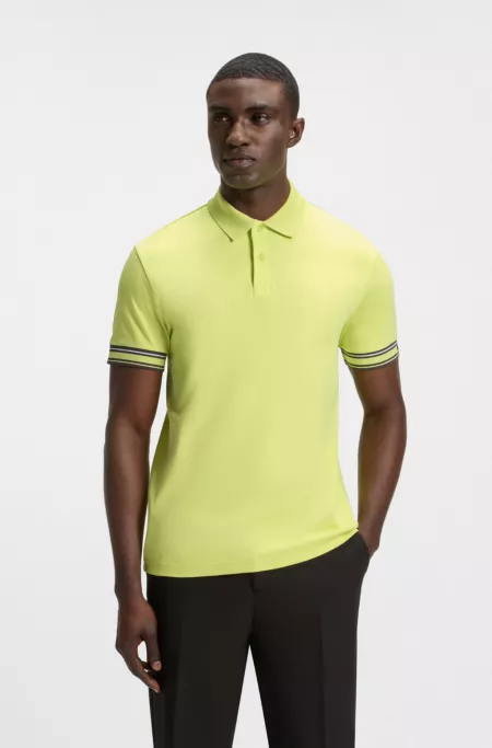 Slim-Fit Poloshirt aus Baumwolle mit gestreiften Ärmelbündchen