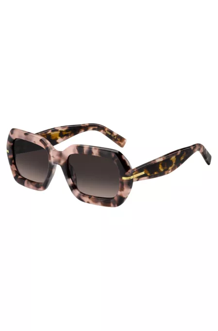 Sonnenbrille mit rosafarbenem Havanna-Muster und goldfarbenen Scharnieren