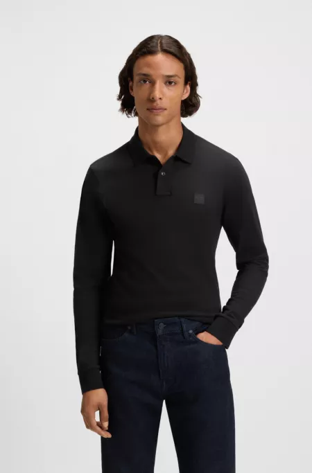 Longsleeve-Poloshirt aus Interlock-Baumwolle mit Logo