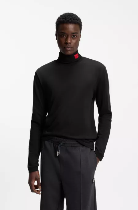 Slim-Fit T-Shirt aus Baumwolle mit Stehkragen und Logo am Kragen