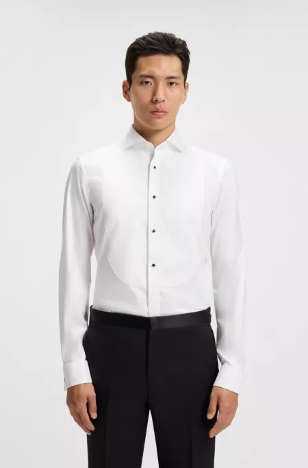Slim-Fit Smokinghemd aus elastischer Baumwoll-Popeline mit bügelleichtem Finish