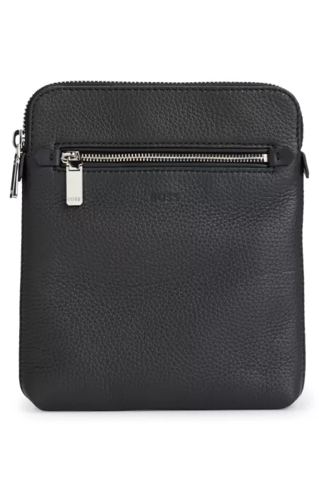 Bolso bandolera de piel granulada con logo grabado