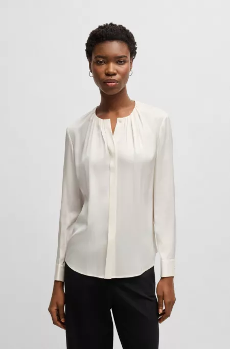 Blusa regular fit en seda lavada a la arena con puños ajustables