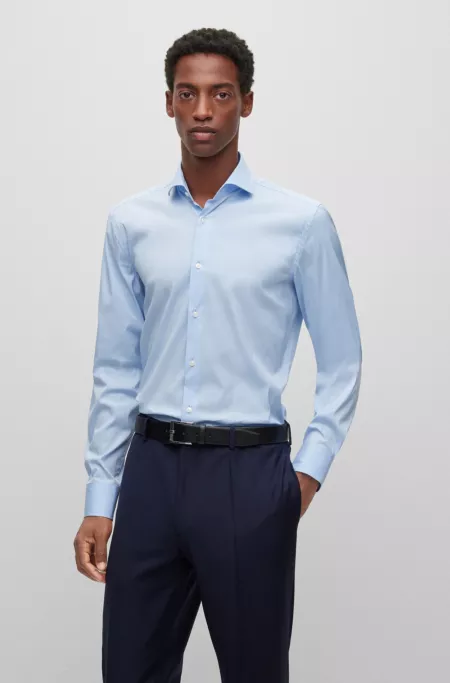 Camisa slim fit en popelín de algodón de planchado fácil