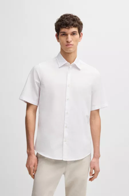 Camisa slim fit en popelín de algodón elástico de planchado fácil