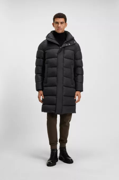 Chaqueta acolchada repelente al agua con capucha y silueta larga