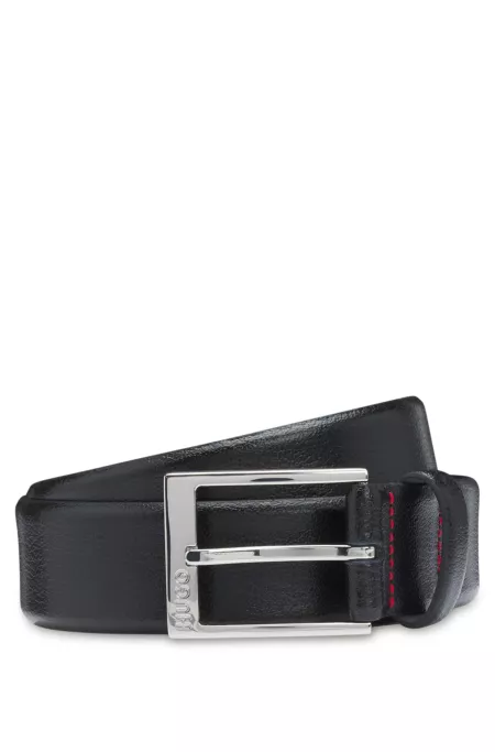 Cinturón de piel italiana con logo grabado en la hebilla con placa