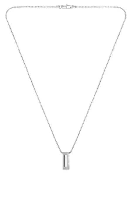 Collar plateado con cadena biselada y eslabón con logo