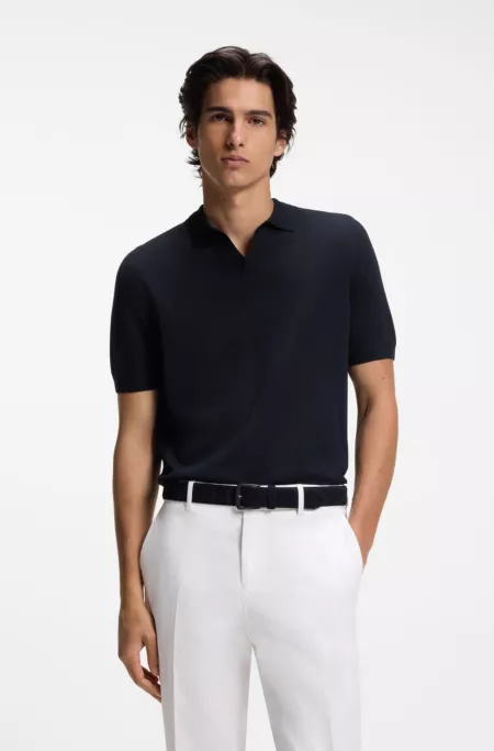 Polo de punto con diferentes estructuras en mezcla de lana