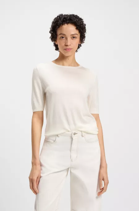 Jersey de manga corta de punto con costuras caladas