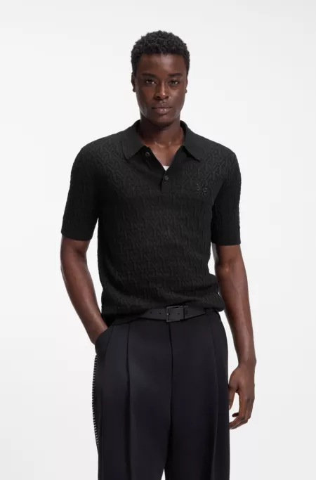 Polo de punto de algodón elástico para equitación con aplique de logo