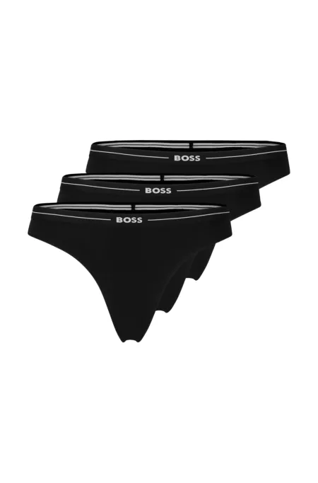 Estos tres tangas BOSS Mujer de tiro normal se han elaborado en cómodo punto de algodón elástico. Logo centrado en la cintura.