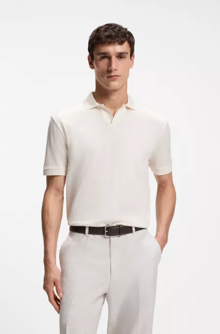 Polo de punto en jacquard de algodón y lino con cuello abierto