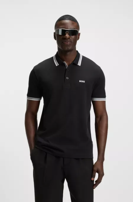 Polo slim fit de algodón elástico con ribetes en contraste