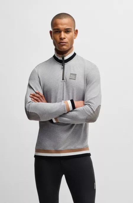 Esta sudadera BOSS Hombre straight fit elaborada en cómodo algodón elástico es una versión moderna del clásico estilo troyer. Cuello y puños con rayas de la marca. Característico parche con logo.