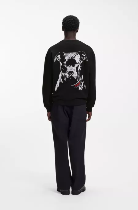Sudadera relaxed fit en felpa de algodón con ilustración de perro
