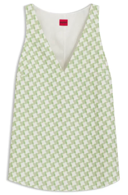 Este top HUGO Mujer presenta un estampado de raya diplomática brillante y un diseño inspirado en un chaleco. Elaboración en algodón con lino. Diseño slim fit de estilo impecable.