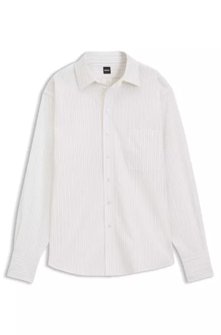 Sobrecamisa oversize fit con raya diplomática en crepé de georgette