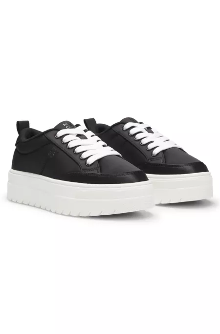 Baskets à lacets en mélange de matières avec logo sur le contrefort