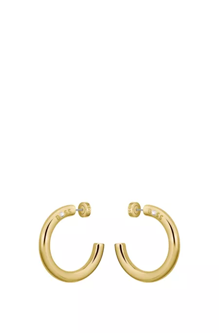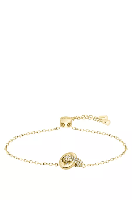 Boucles d’oreilles dorées avec anneaux entrelacés et pavés de strass