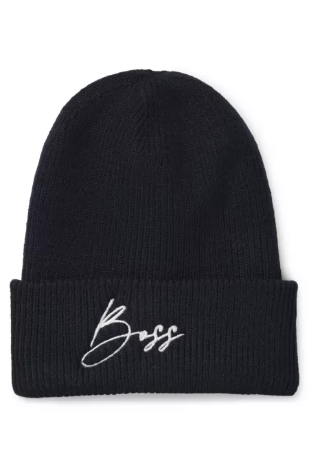 Bonnet en laine vierge avec plaque logotée