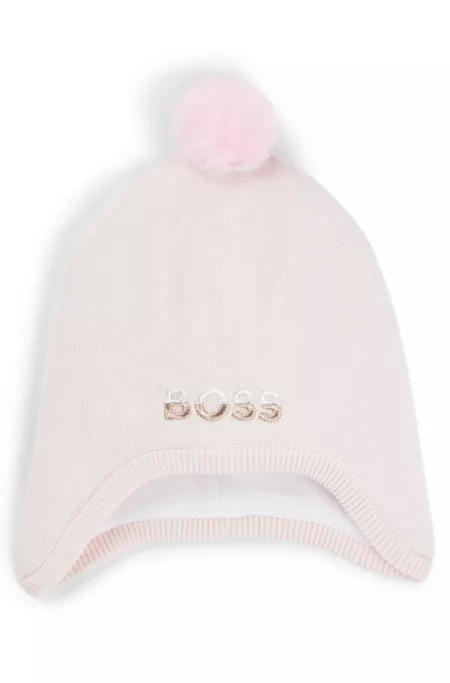 Bonnet pour bébé en coton pur avec pompon et logo brodé