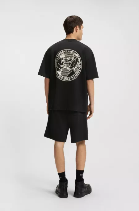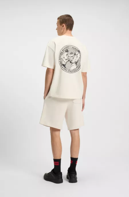 Ce t shirt HUGO Homme à la coupe ample est orné sur le devant et au dos d’un imprimé artistique créatif inspiré de l’univers de la boxe. Coton doux.