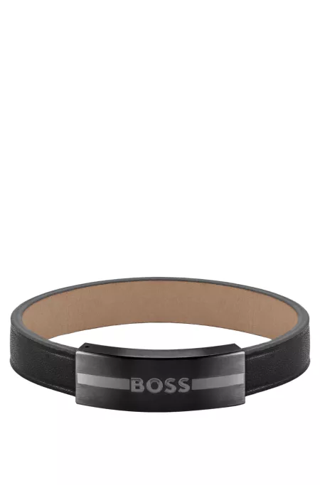 Bracelet en cuir avec plaquette en métal à logo émaillé