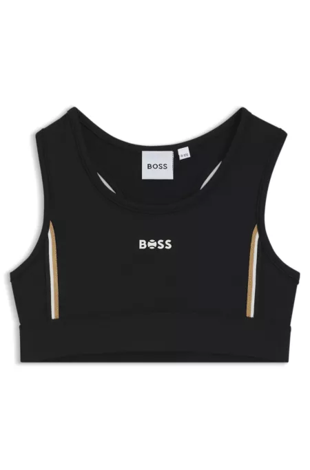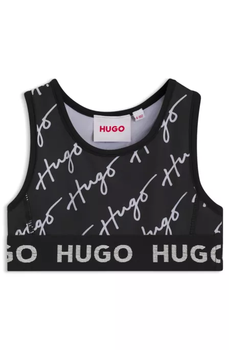 Une brassière de sport emblématique pour enfant signée HUGO, confectionnée en jersey stretch et ornée de logos.
