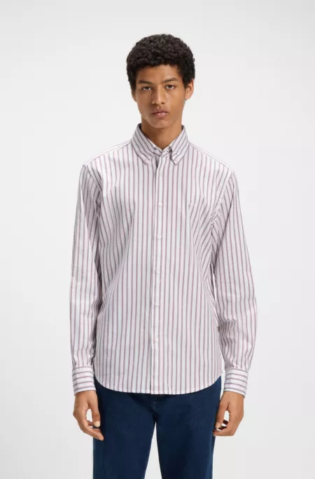 Chemise Regular Fit à rayures en popeline de coton stretch facile à repasser