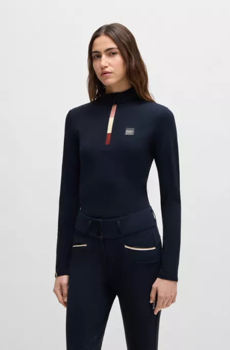Pourvue d’une coupe Slim et confectionnée dans un tissu très stretch à intérieur peau de pêche doux, cette chemise d’entraînement d’équitation BOSS Femme allie style, confort et performance. Séchage rapide et respirabilité.