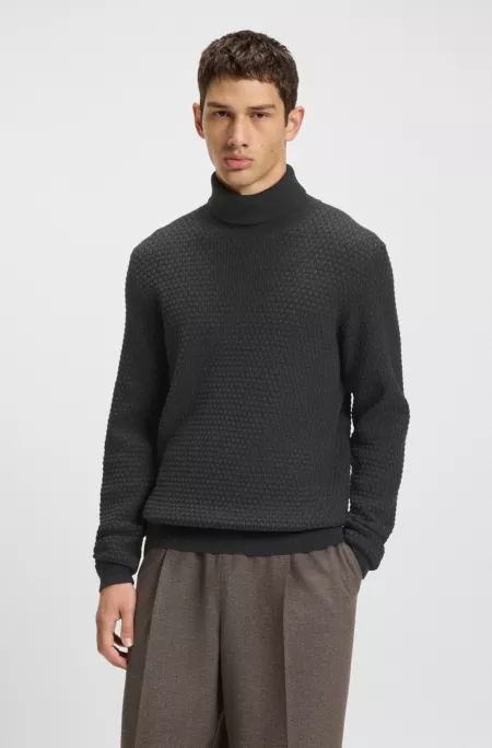 Pull à col roulé en maille structurée de coton