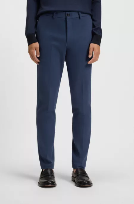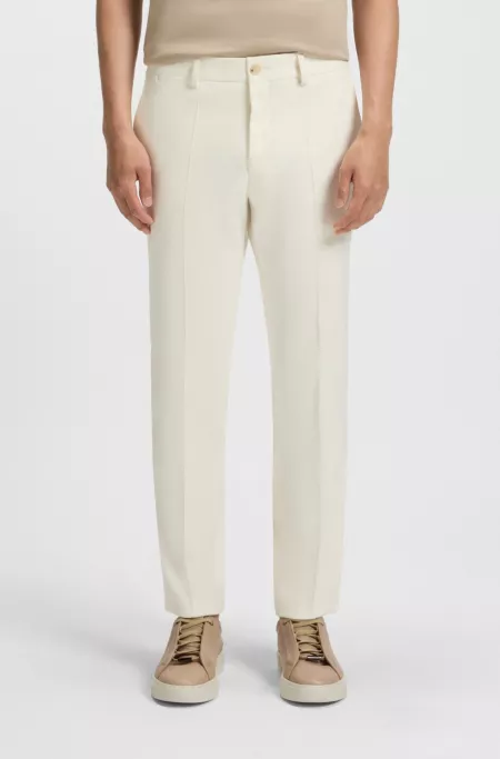 Idéal pour vos tenues habillées ou décontractées, ce pantalon BOSS Homme est confectionné en coton à teneur en cachemire et stretch offrant confort et élégance. Coupe Slim. Plis sur le devant.