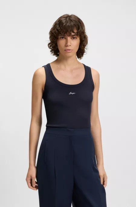 Indispensable au quotidien, ce débardeur à la forme ajustée BOSS Femme est confectionné en coton côtelé, enrichi de stretch pour plus de confort. Logo manuscrit brodé.