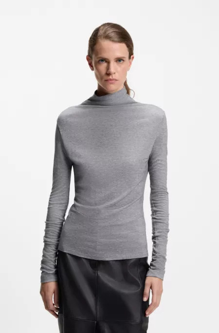 Chemisier en crêpe de soie stretch avec encolure froncée