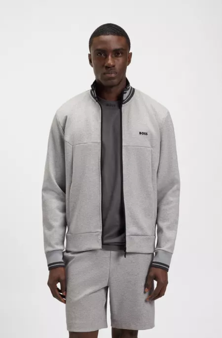 Sweat à capuche zippé en coton stretch avec empiècements à rayures