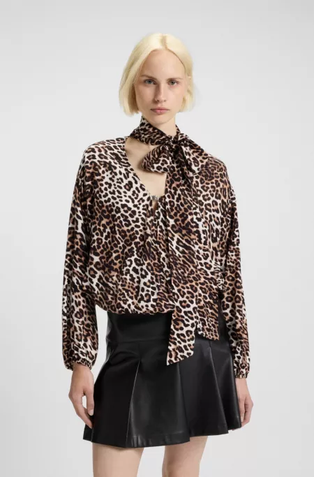 Robe à la coupe évasée avec empiècements godets et broche nœud