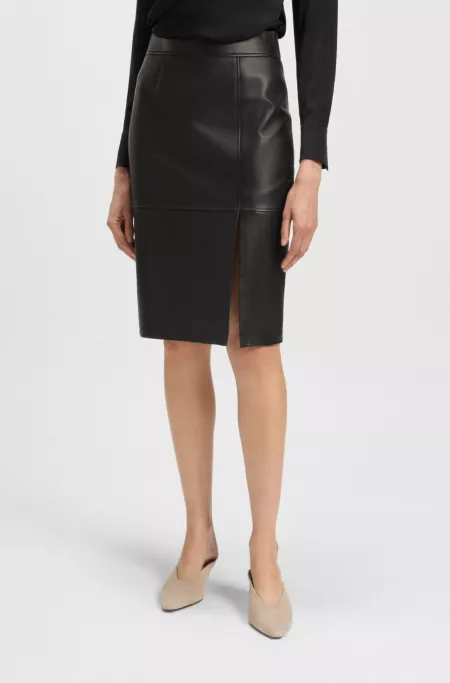 Jupe crayon en cuir avec deux fermetures éclair sur le devant
