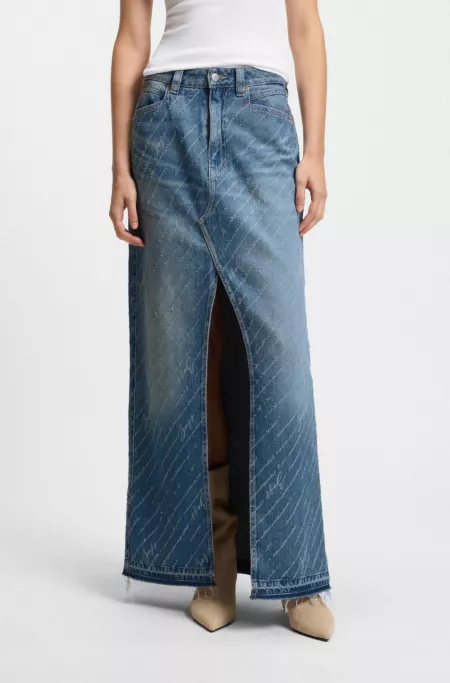 Jupe en denim avec rayures tennis logotées et fente sur le devant