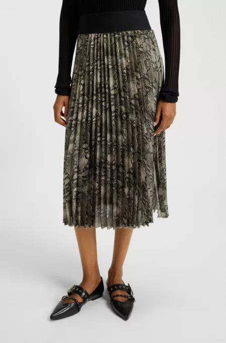 Jupe mi-longue plissée à imprimé python