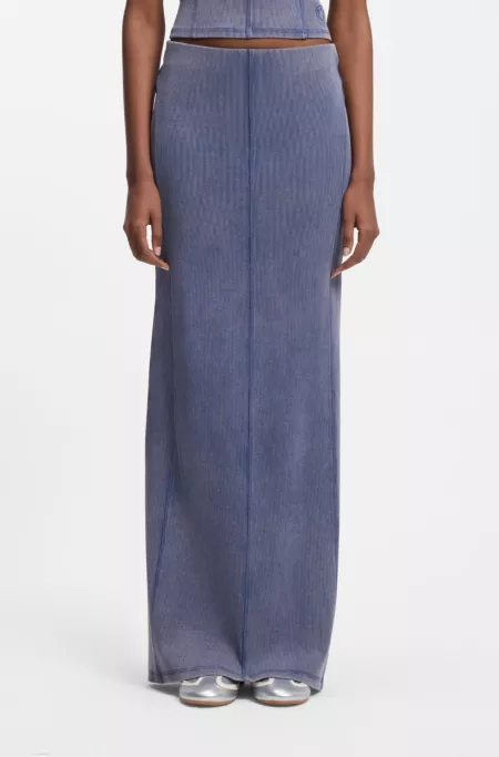 Jupe mi-longue en maille côtelée de fils moulinés