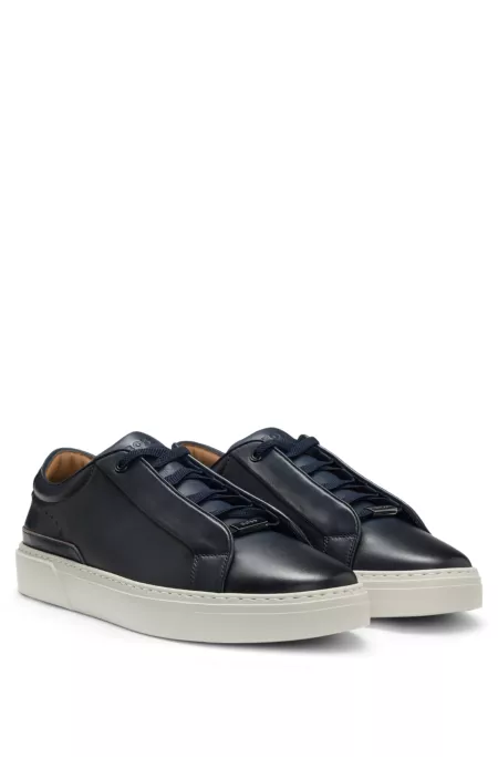 Baskets en cuir grainé avec finitions en cuir suédé BECKHAM x BOSS
