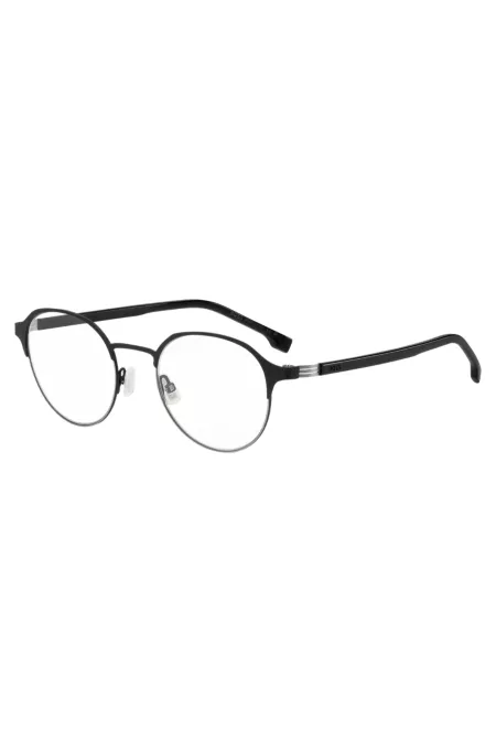 Monture optique ronde en acier noir avec charnière à rayures