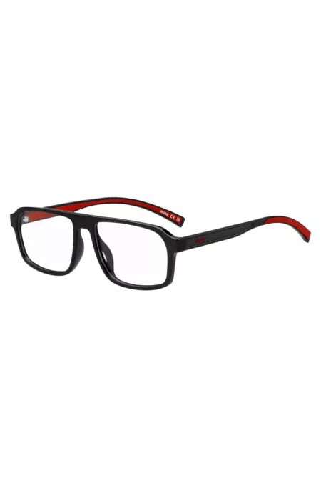 Monture optique en acétate noir avec branches superposées rouges