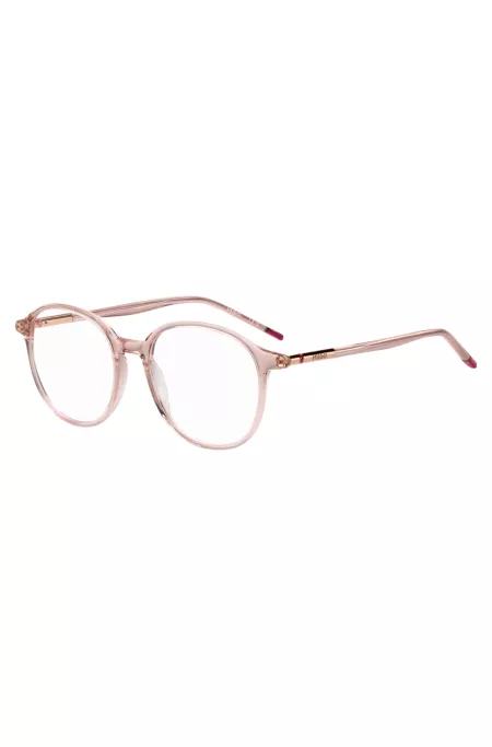 Monture optique en acétate rose avec garnitures en métal doré
