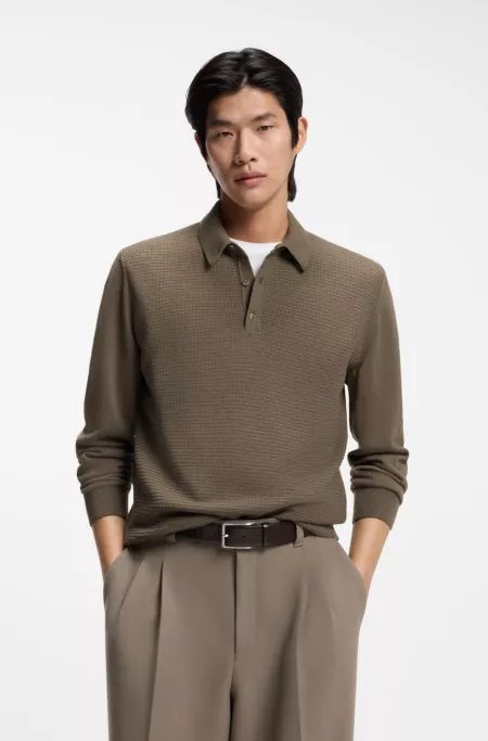 Confectionné avec des structures mélangées misant sur un contraste raffiné, ce polo en maille BOSS Homme est idéal pour les superpositions hivernales. Coupe standard intemporelle. Laine mélangée douce.