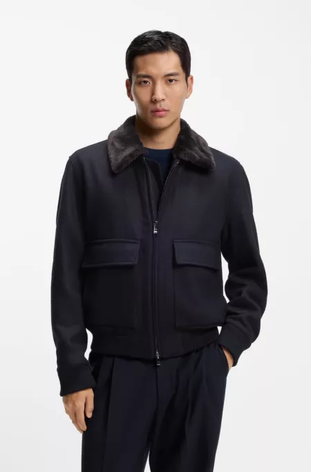 Manteau en laine vierge avec col amovible en fourrure synthétique