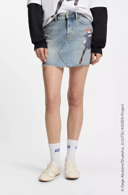 Jupe en denim HUGO x Jujutsu Kaisen avec imprimé Nobara