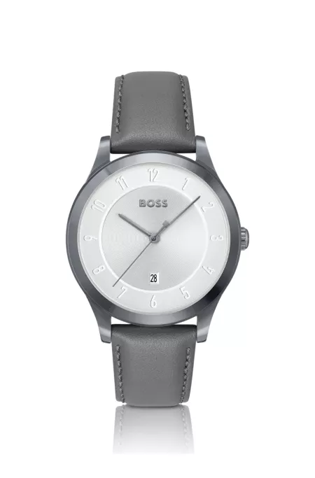 Montre plaquée grise à bracelet en cuir